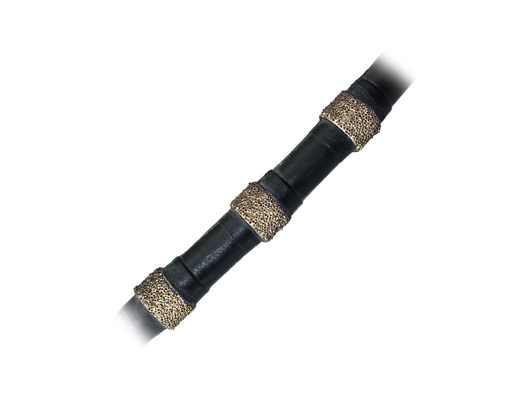 Канат DS-SBB-1 предназначен для резки стали и других металлов, а так же бетона с сверхтяжелым армированием. Уникальная технология вакуумной пайки обеспечивает намного боль-шую адгезию алмаза, чем с простой гальваникой. За счет выступающего наружу алмаза канат с первых минут режет с высокой скоростью. Канат не меняет своего диаметра по мере износа, что позволяет стыковать старые и новые куски каната.