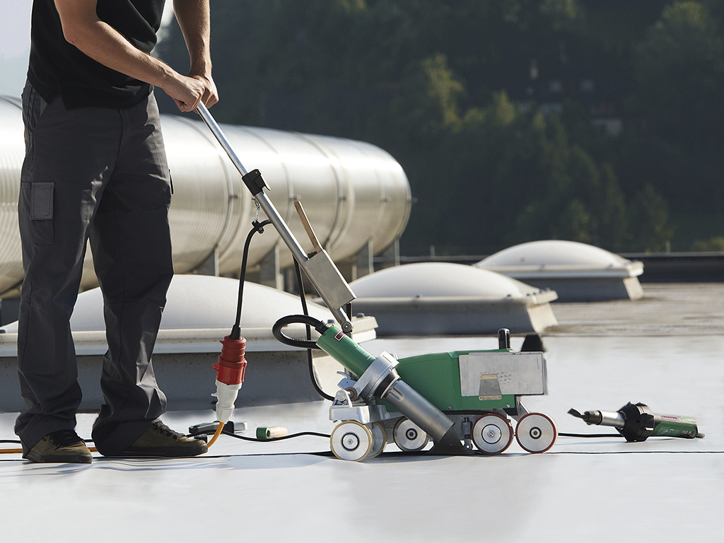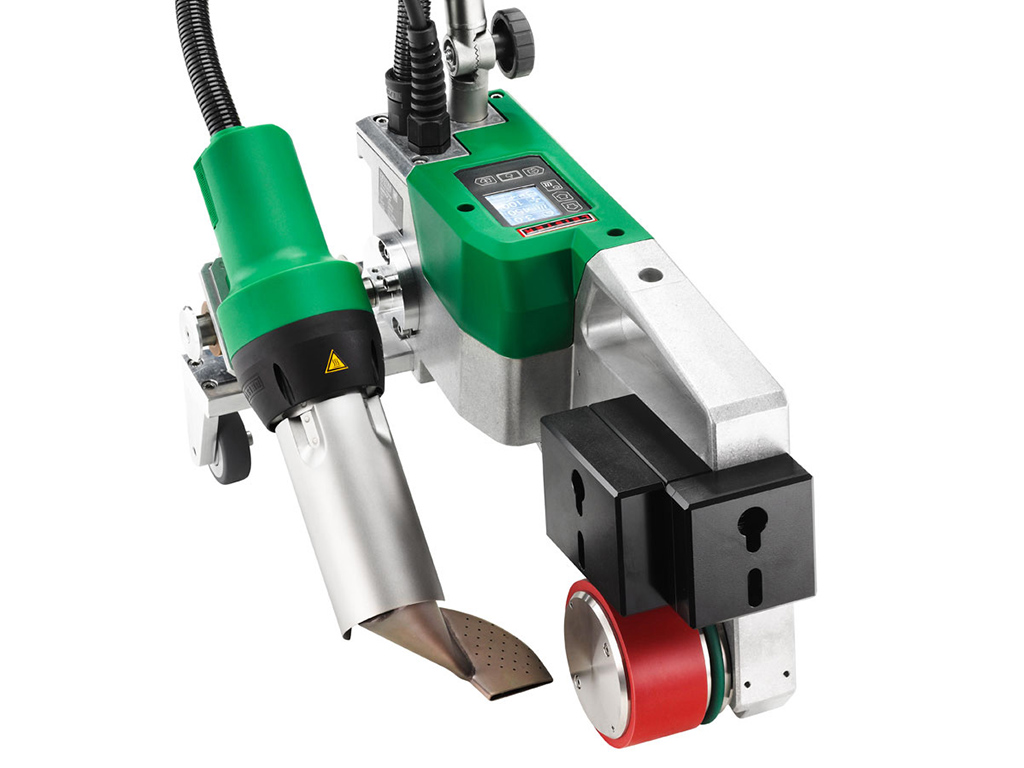 Сварочный автомат горячего воздуха UNIROOF AT с цифровым управлением для сварки внахлест рулонных полимерных кровельных покрытий. - это отличное решение для монтажа термопластичной гидроизоляции на плоских и скатных (с уклоном до 30 градусов) кровлях. Позволяет производить сварку материала в труднодоступных местах, примыканиях и на парапете.