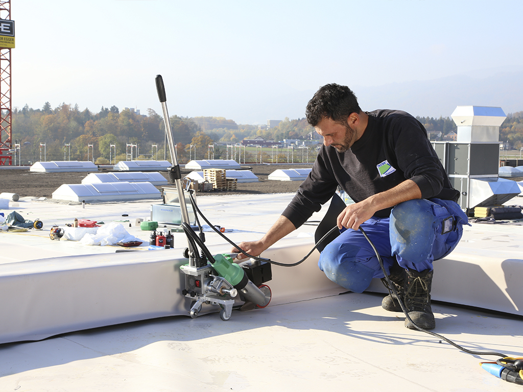 - Не требуется переоборудования автомата: благодаря подвижной транспортировочной оси, новый UNIROOF ST (Унируф ST) справляется со сваркой близко к краю и на парапетах;